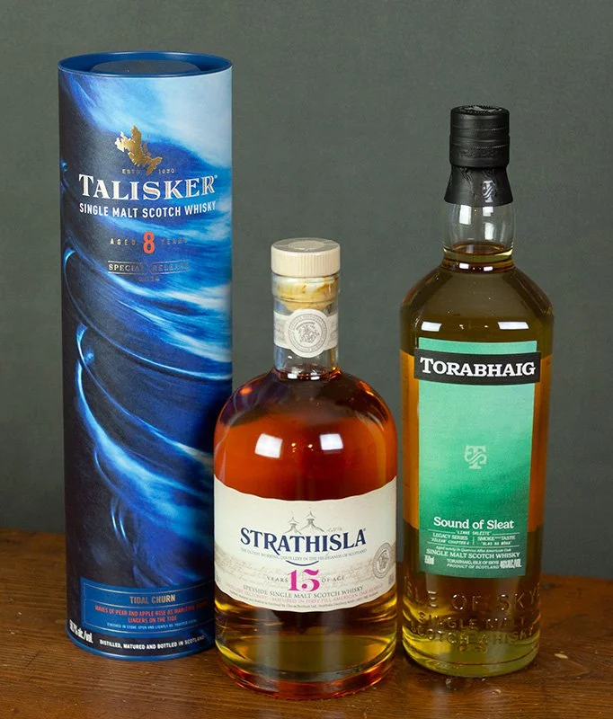 In June, Scotch Masters Kevin and Larry travelled to Scotland. They visited fascinating historic landmarks, hiked in natural areas of incomparable beauty, and visited distilleries. And tasted whisky. And they selected single malts for this tasting, some of which you can't get here in the States.